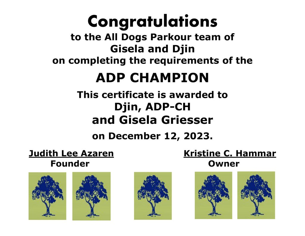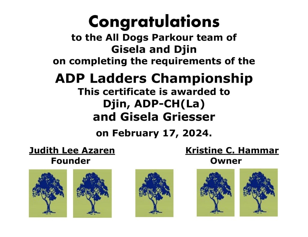 As part of my training, I taught my then 2 year old border collie Djin the necessary skills to achieve his Level 1 ADP Title and you can see the video below. We have since achieved his ADP Championship and ADP Ladders Championship (video links below).